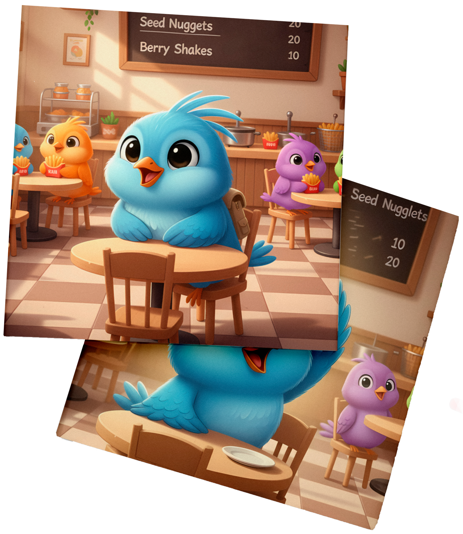 The friendly interaction with the waiter and Birdie’s celebratory “dance” reinforce positive social behavior. With its repetitive, engaging structure and an ending that invites reader participation, this story is a perfect read-aloud that encourages both imagination and a sense of adventure.